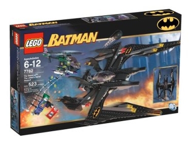 Stop The Joker and save Gotham City™! When The Joker™ and his henchman take to the skies, it's up to Batman™ and the Batwing to stop him! Launch the Batwing's missile at The Joker Copter and stop the villain from dropping laughing gas on the city of Gotham! * Open the Batwing's wings to reveal slide-out rockets! * Launch the Batwing's missile at The Joker's hidden-weapons helicopter! Ages 8-12 523 pieces.