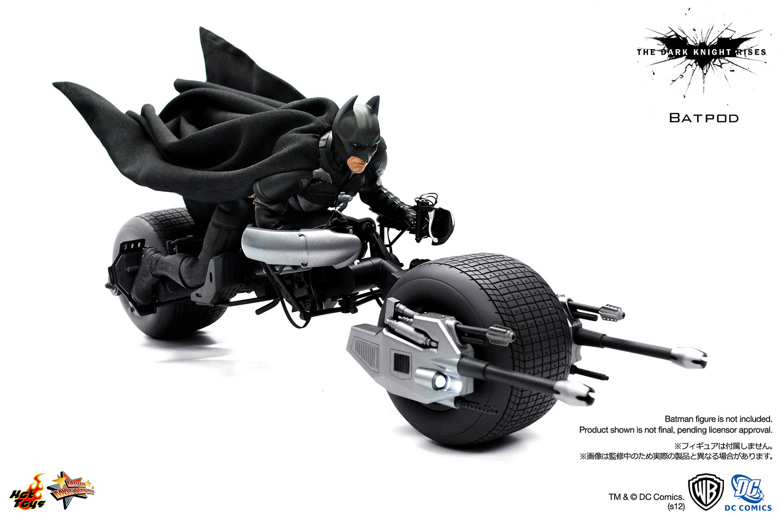 Sideshow Collectibles and Hot Toys are proud to present the Bat-pod Sixth Scale Collectible from the upcoming blockbuster release The Dark Knight Rises, the much anticipated sequel to Batman Begins (2005) and The Dark Knight (2008), featuring the likeness and details of the Bat-pod from The Dark Knight Rises