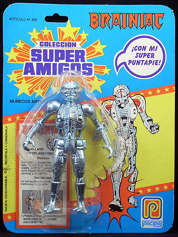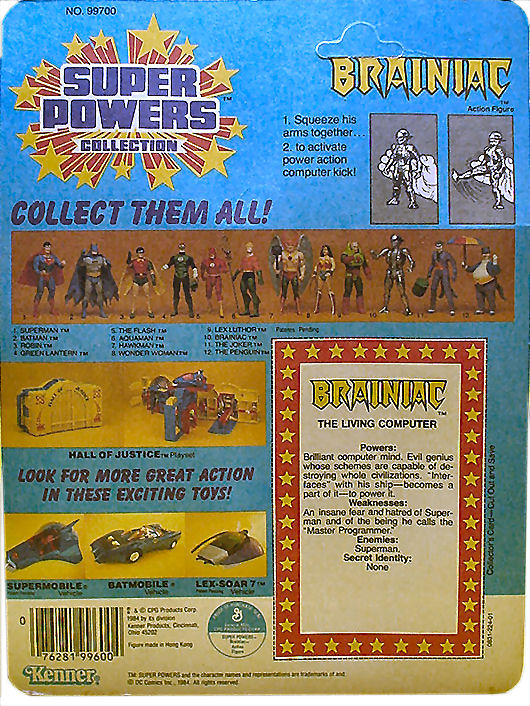 Includes a Super Powers Collection mini comic. Features a clear brain dome and right kicking leg, activated by squeezing the right arm.