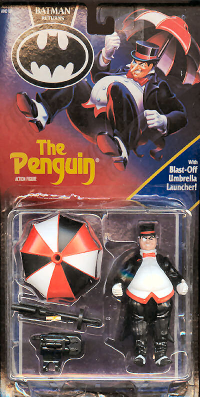 The penguin figure is a repaint from the Super Powers Collection. At the time Danny Deveto, who played The Penguin in Batman Returns did not consent to have his likness in the figure.