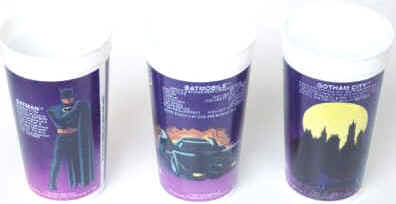 These Taco Bell collector cups feature Batman, The Batmobile, The Batwing, and Gotham City as seen in the smash 1989 film Batman.