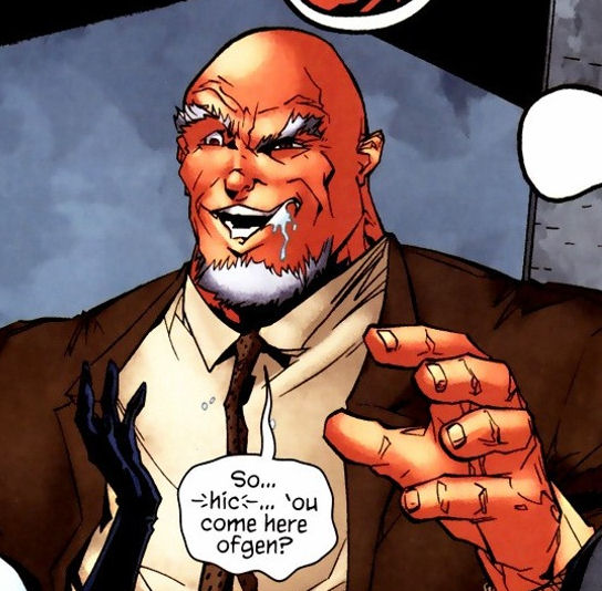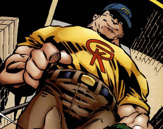 A short time later, the super-villain known as Bane orchestrated a massive breakout at Arkham Asylum and all of the patients, including Amygdala were freed. Amygdala found himself befriending Arnold Wesker, aka, the Ventriloquist who decided to take advantage of the brute's strength. In exchange for helping him find the misplaced dummy, Scarface, the Ventriloquist promised Helzinger that he would help him find his meds. Armed with a surrogate dummy known as "Socko" (which was just a discarded sweat sock), the Ventriloquist and Amygdala visited the Tap Room bar in the hopes of finding Scarface. The bar patrons laughed at the Ventriloquist, not realizing that Amygdala was ready to defend him. Seeing the Ventriloquist being mocked and laughed at drove Amygdala into a frenzy and he went berserk, brutalizing nearly everyone in the bar. Once he calmed down, Amygdala immediately regretted his violent outburst and was desperate to earn the Ventriloquist and Socko's approval.