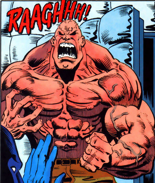Aaron Helzinger was a giant of a man prone to fits of homicidal rage. Due to these violent episodes he was remanded to the care of Arkham Asylum. A surgeon at Arkham removed Helzinger's amygdala cluster in the hopes of curing the psychotic episodes. This procedure yielded unexpected results however as Amygdala became exceedingly angry in opposition to what the surgery was supposed to achieve.
