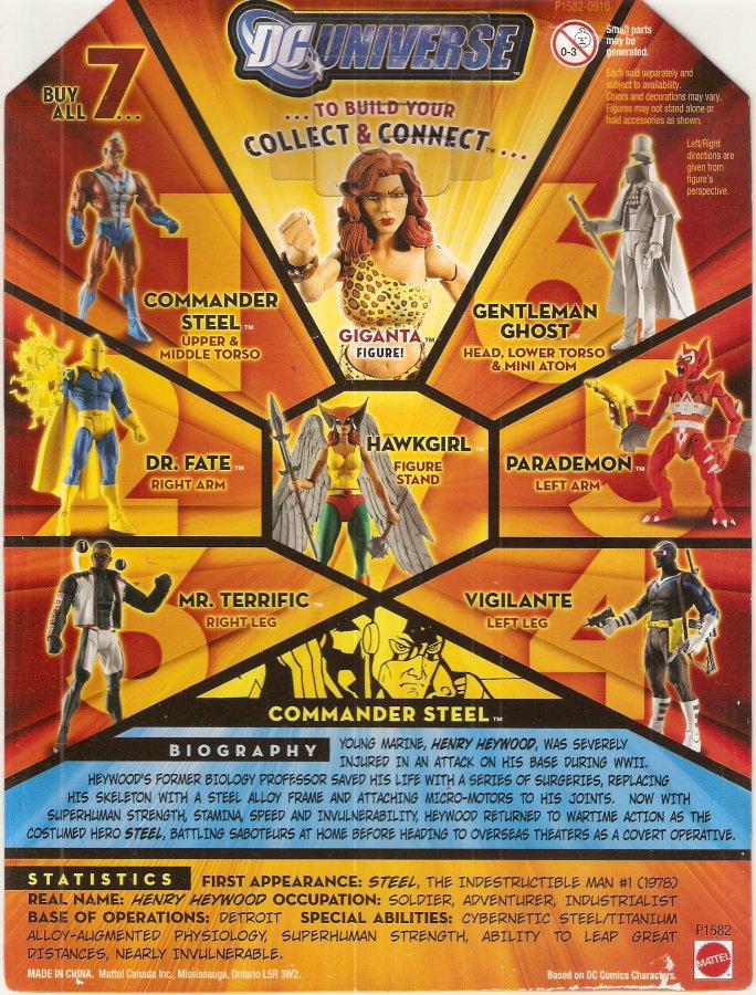 Young Marine, Henry Heywood, was severely injured in an attack on his base during WWII. Heywood's former biology professor saved his life with a series of surgeries, replacing his skeleton with a steel alloy frame and attaching micro-motors to his joints. Now with superhuman strength, stamina, speed and invulnerability, Heywood returned to wartime action as the costumed hero Steel, battling saboteurs at home before heading to overseas theaters as a covert operative.
