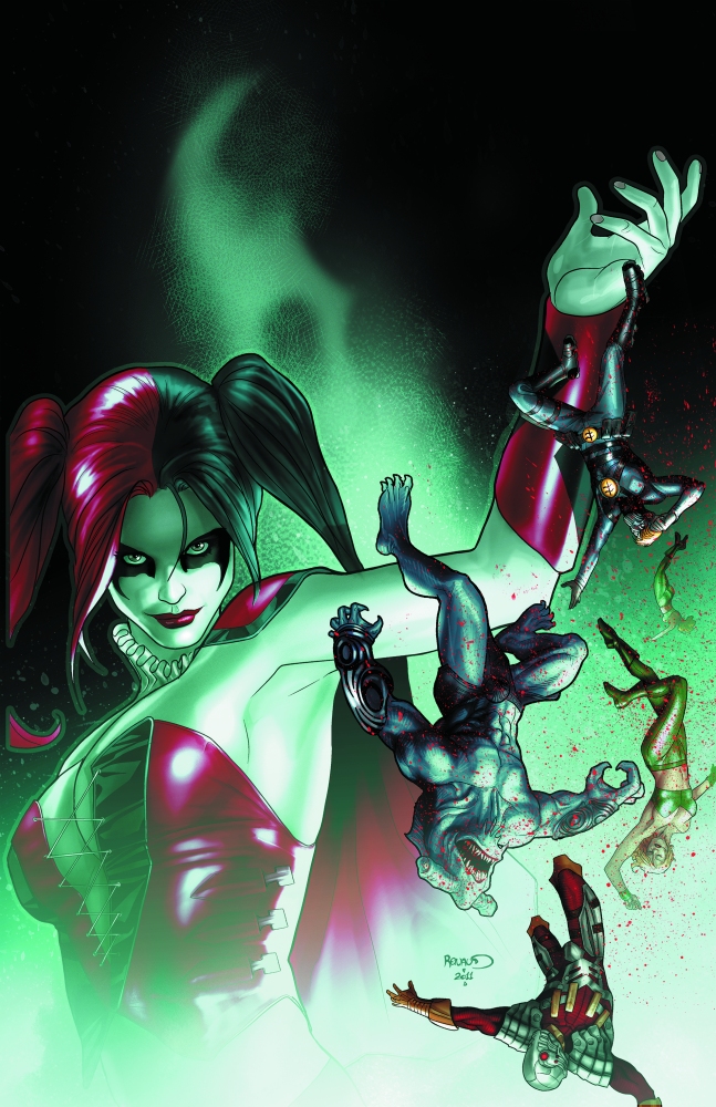 "The Hunt for Harley Quinn" starts here! After causing a prison riot and escaping an "escape-proof" supervillain penitentiary, the maniacal Harley Quinn is on the loose! The race is on as Deadshot – leading an all-new Suicide Squad – tracks his former teammate as Harley hunts the love of her life: the Joker! Plus: Don't miss the unofficial crossover with STORMWATCH #6, tying into the explosive events of that issue!