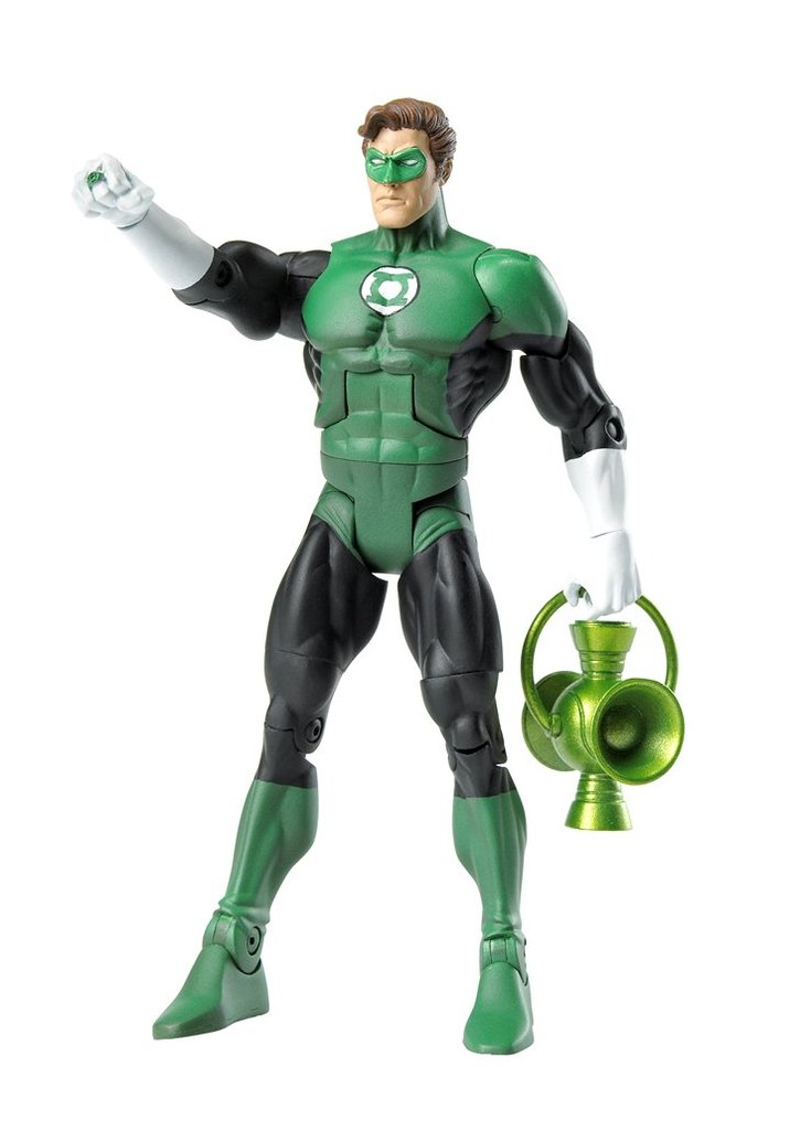Biography: While training in a flight simulator, test pilot Hal Jordan was suddenly transported to the crash site of an alien spacecraft. The injured pilot passed on to Jordan his green ring and his uniform. The ring allowed him to make real anything that he could imagine, from flying unaided through space to lifting mountains. With it, Jordan, chosen by the ring itself because of his fearlessness, must fight evil as a member of the Green Lantern Corps.