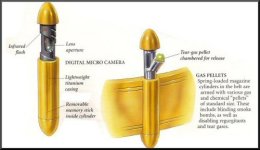 The batsuit has been repeatedly updated in order to reflect advances in technology. Originally the costume contained no protective armor, but with the advent of various forms of bulletproof materials like kevlar, the costume has been re-imagined with varying forms of bulletproof protection. The array of devices in the utility belt have also become more complex over time. The simple coiled rope and batarang scaling equipment became a rocket powered grapple gun, the cowl was updated with night-vision lenses and communication equipment, and a device to attract the bats from the Batcave was installed in the heel of one of the boots. The suit has also carried on different occasions a re-breather device, flash and gas grenades, lockpicks, a signalling device for the Batmobile, electronic surveillance equipment, a forensic kit for gathering crime scene evidence, a medical kit, and, in early incarnations, a pistol in a holster. On any occasion where Batman anticipates encountering Superman, he has also carried a kryptonite ring given to him by the Man of Steel as a weapon of last resort.