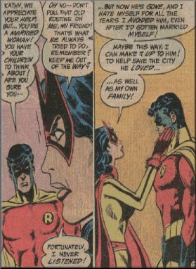 Batman tried to convince Kathy to give up the mantle, stating that it was no place for a lady. He never succeeded. In fact, Kathy proved herself to Batman and got his respect. After a few years however, Kathy lost the will to keep being a crime fighter. She retired and bought a circus, Kane's Kolossal Karnival. Kathy did occasionally team up with the new Batgirl, Barbara Gordon to help her out.