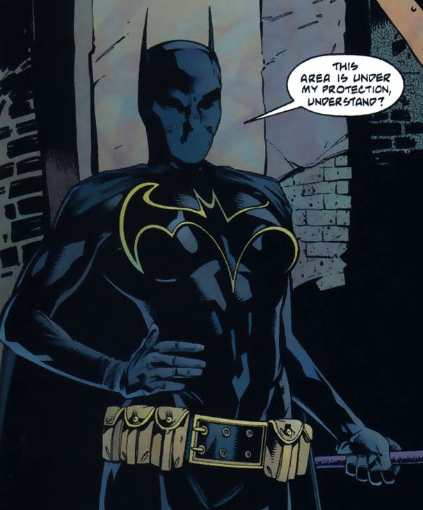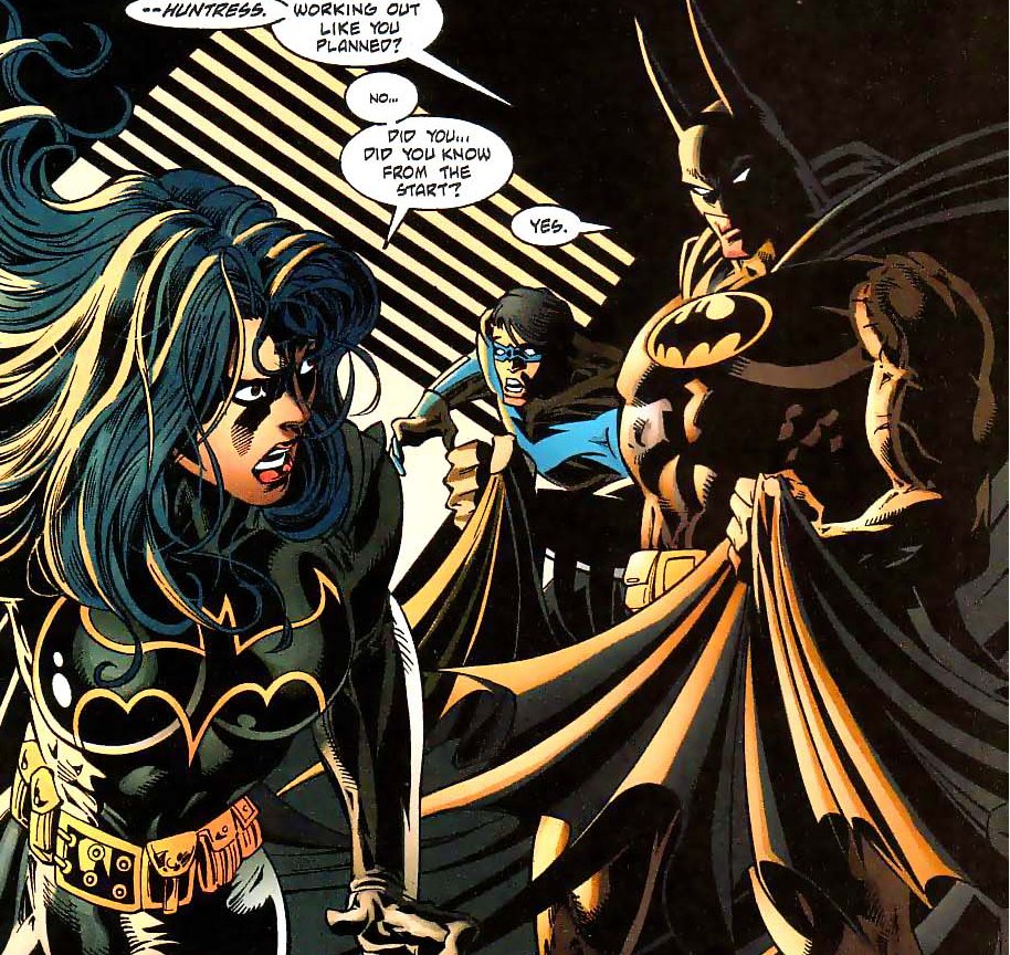 During the "No Man's Land" Declaration in Gotham City, she briefly donned the guise of Batgirl to better inspire fear into the criminals of Gotham City, though she would also work in the guise of Huntress. She began the habit of marking territories in No Man's Land, all of which would be adopted by the criminals and GCPD. Though Batman knew the entire time that it was Huntress under the cape and cowl, he eventually ordered her to give it up. Batman would give Huntress' Batgirl outfit to Cassandra Cain. Helena continued to be Huntress in No Man's Land, allying herself with a renegade police officer to the point where she assisted in capturing Nightwing and Oracle (though in the end, she helped them escape). On Christmas Eve, the Joker attacked her. Joker shot the Huntress five times that night. She survived the encounter and fully recovered, earning Batman's respect.