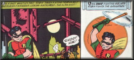 Perhaps it was the fact that Zucco was brought in so soon that prevented Dick from becoming as grim a figure as Bruce. As a superhero, Dick was more prone to swashbuckling and laughing in the midst of battle. His acrobatic skills were such that he taught Batman a thing or two, and coupled with the martial arts he learned from Batman, Robin's speed and agility often allowed him to make bad guys look like lumbering clutzes. Some of Robin's lightness of heart seemed to rub off onto Batman, making him seem less predatory and more heroic.
