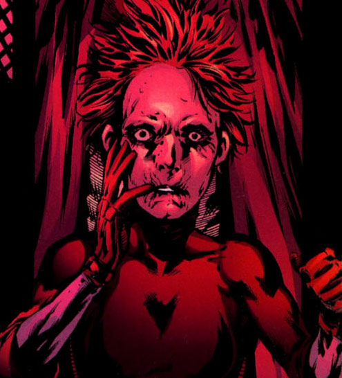 During the police raid on Professor Pyg's labratory, Sasha is taken along with the other Dollotrons to the hospital where she suffers a mental break and murders her own father in his hospital bed. Sasha is saved from incarceration by the Red Hood who shows up and offers to let her join him in his crusade to clean up the streets of Gotham. She accepts and taking on the name of Scarlet she and Red Hood begin cutting a bloody swath through the streets of Gotham.