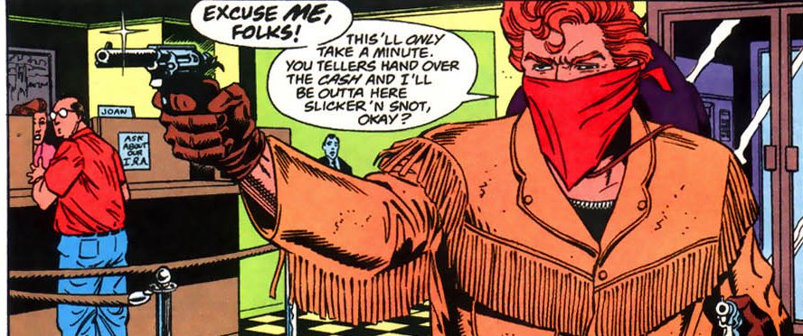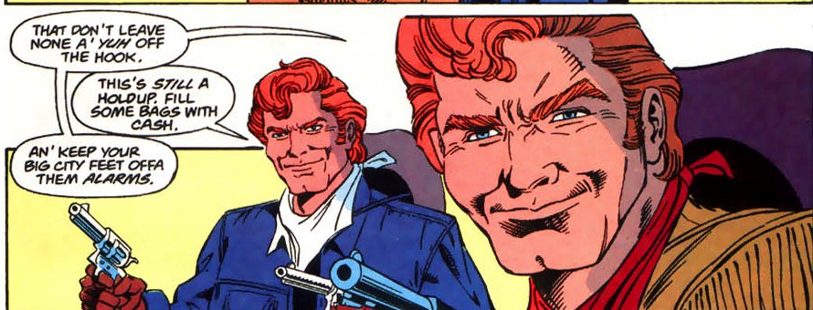 A blonde, female criminal rescues them from a chain gang. She fools them into believing she is their long lost sister; this is a ruse to ensure their help in her plans. Robin and many other heroes, including modern day versions of Pow Wow Smith and Nighthawk help take them down. Much of the action takes place in a recreation of a classic wild west town/Gotham City tourist attraction.
