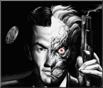 Double-Headed Coin: Two-Face uses a two-headed silver dollar, one side of which is defaced, the other side clean. Flipping the coin dictates Harvey when making any significant life decisions. If the coin lands on the scarred side, Two-Face will pursue acts of evil. If the coin lands on the unmarked side, he is compelled to commit acts of good. At one point, Dent as Two-Face was so dependent on the coin for any of his criminal acts that he could be easily defeated by taking the coin away from him or preventing him from seeing the result of the flip. The original Earth-Two Two-Face was usually shown at this level of dependency Kent. Dent has since lessened his dependency on the coin flip to whether an situation should be implemented, rather than each individual act.