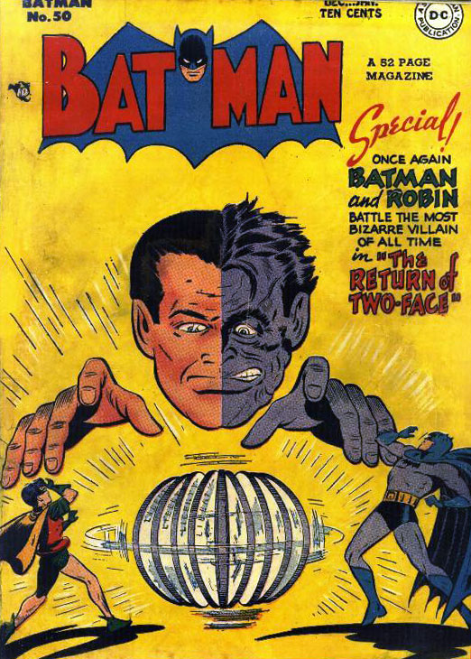 Batman (Bruce Wayne); Robin (Dick Grayson); Two-Face (Harvey Dent/Kent)