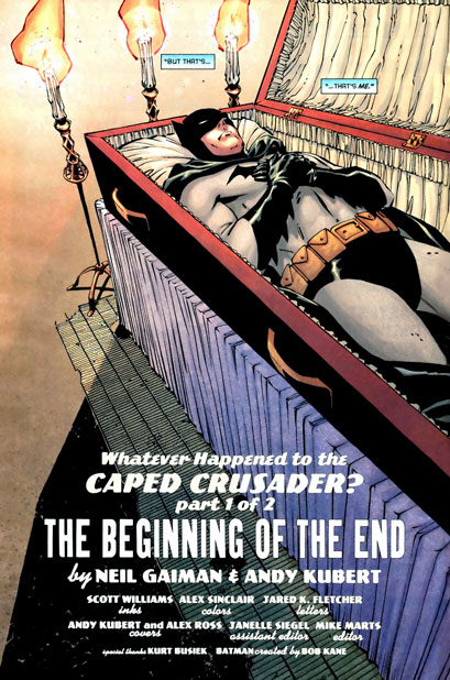 "The Gentleman's Gentleman's Tale" to the crowd of mourners - confessing his own role in the death of Batman.