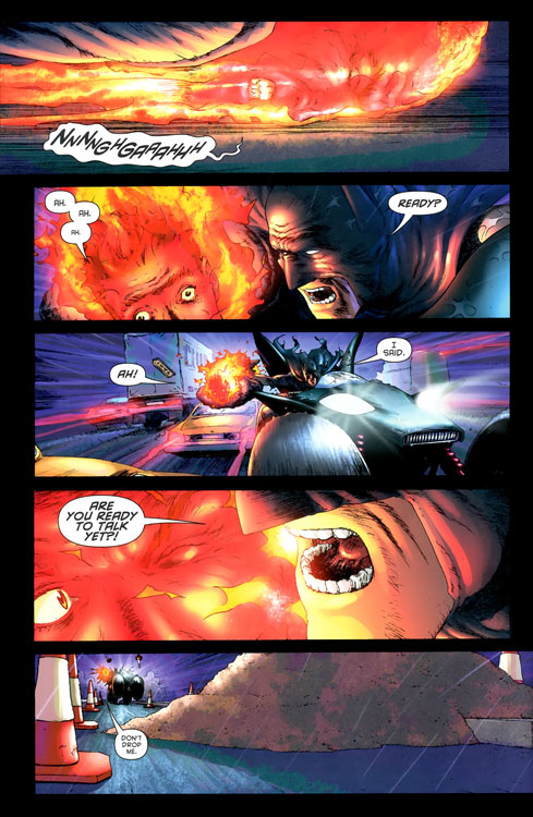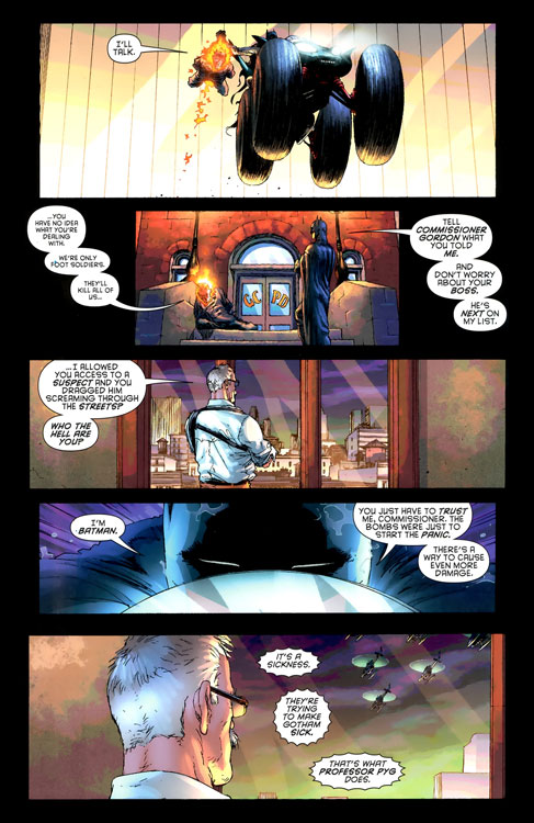 More than ever Gotham City needs a Batman. And, Dick realizes, he is that Batman. And he's willing to do whatever it takes to stop Pyg. Even if it means dragging Phosphorus Rex's face inches above the pavement as he speeds into oncoming traffic aboard the Bat-Quad!