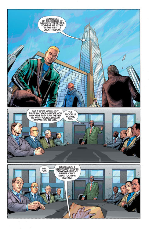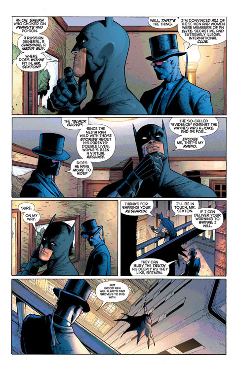 CHARACTERS: Batman (Dick Grayson); Robin (Damian Wayne); Alfred Pennyworth; Gravedigger (Oberon Sexton); Lucius Fox; Duke Zepar; Talia al Ghul