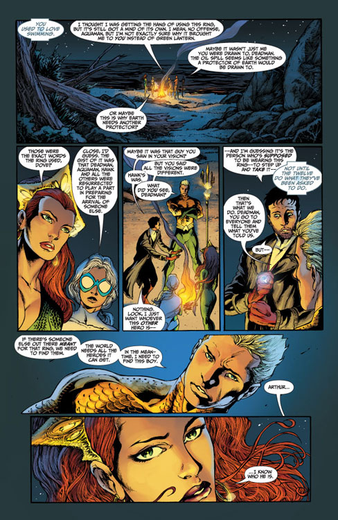 The resurrected have discovered their purpose for being back, but where will the knowledge lead them? Who is the new Aqualad? And what strange event is taking place around the White Power Battery in New Mexico?