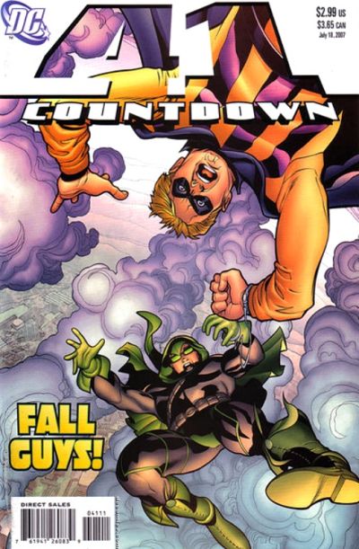 Trickster and Pied Piper are falling from a plane after escaping from Deadshot and Multiplex. Piper had grabbed a bag on his way out and it contains their equipment including Trickster's flying boots. With each of them wearing a boot they try to slow down their fall and they land in water. They survive the fall and find themselves in Gotham City. Trickster knows someone in Gotham who may be of help to them. Jimmy Olsen has made a costume for himself and adopted the name Mr. Action. Wearing the costume under his regular clothes he goes to work, drawing strange looks because of his heavy clothes on a hot day. Mary Marvel thinks about getting a mentor because of her recent rash actions. She is being observed by someone through an Eclipso jewel. Atom, Donna Troy, Jason Todd and a Monitor, who they call Bob, are travelling to the nanoverse looking for Ray Palmer. They land on a jungle world with men on mechanical frogs. Holly Robinson and Harleen Quinzel are watching the news where Wonder Girl and Supergirl have taken down Air Force One and are assumed to be part of the Amazon forces. This has caused a massive protest outside the Athenian Women's Shelter they are staying at. Harley goes out to challenge the protesters but is pulled back by Holly. Karate Kid is preparing to return to the 31st century with the rest of the Legion but is told by Brainiac 5 that he has to stay behind. One of Triplicate Girl's selves, Una, comes through the portal to join Karate Kid on his mission.