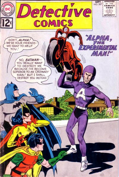 Batman and Robin assist with the training of Alpha, the Experimental Man. Alpha is a synthetic man created by Dr. Burgos. While in training Alpha begins to experience emotions, but does not fully understand them. To improve his understanding, Alpha subjects himself to one of Dr. Burgos’s machines which causes him to gain superior strength. However, the machine also causes Alpha’s body to burn out.