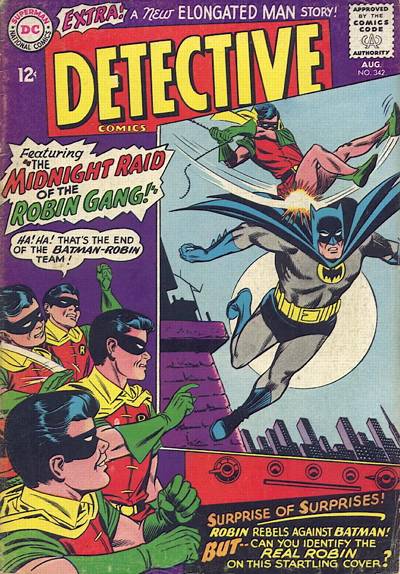 Dick Grayson visits his classmate Tom Willard, who has not been attending school. He finds a Robin costume in a shed behind Tom's house. When he finds Tom, he pretends that he wants to drop out of school too. Tom brings Dick to the office of Al Craig, who heads a gang of drop-out juveniles. The boys all wear Robin outfits and are ordered to commit crimes.