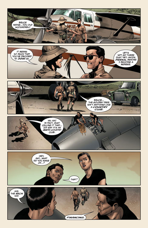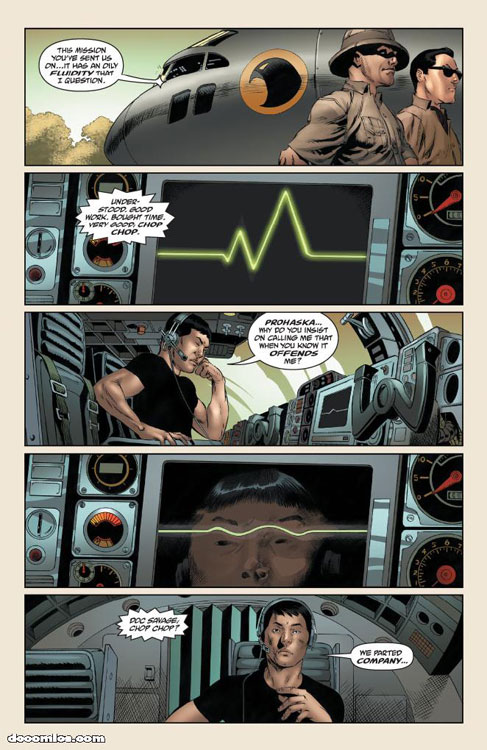CHARACTERS: Batman (Bruce Wayne); Doc Savage (Clark Savage, Jr); The Spirit (Denny Colt); The Avenger (Richard Henry Benson); Monk; Ham; Long Tom; Renny; Johnny; Black Canary (Diyata Dasari); Rima the Jungle Girl; Janos Prohaska; Henry Biggs; Ant Manson; Wu Cheng; Ritter Henrikson; Jenny Cloud; Anton Colossi; Ferrios