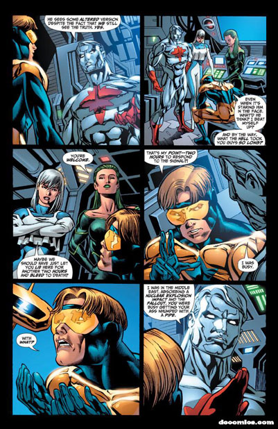 CHARACTERS: Booster Gold (Michael Jon Carter); Fire (Beatriz Corvalho); Ice (Tora Olafsdotter); Captain Atom (Nathaniel Adam); Maxwell Lord; Superman (Clark Kent)