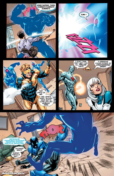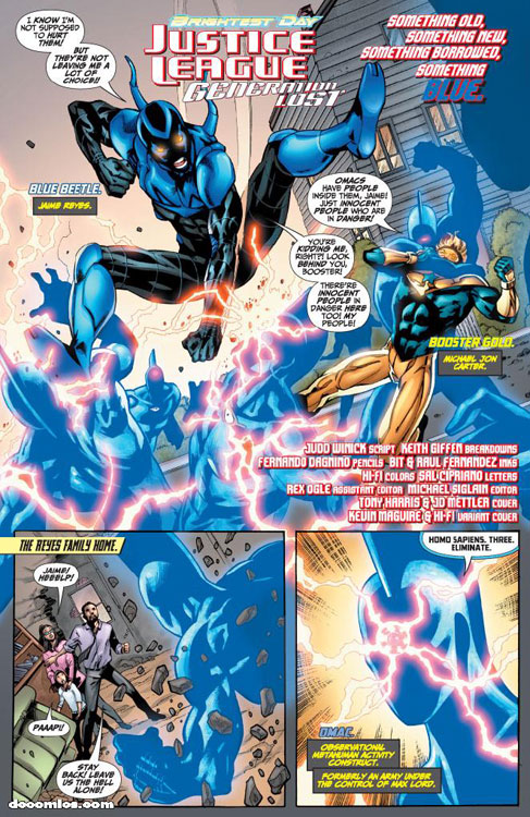 CHARACTERS: Booster Gold (Michael Jon Carter); Fire (Beatriz Corvalho); Ice (Tora Olafsdotter); Captain Atom (Nathaniel Adam); Maxwell Lord; Colonel Taleb Beni Khalid; Blue Beetle (Jaime Reyes)