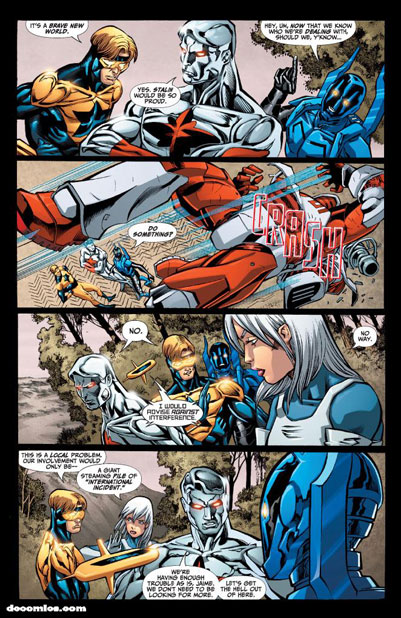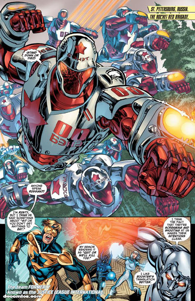 CHARACTERS: Booster Gold (Michael Jon Carter); Fire (Beatriz Corvalho); Ice (Tora Olafsdotter); Captain Atom (Nathaniel Adam); Maxwell Lord; Blue Beetle (Jaime Reyes); Rocket Red (Gavril Ivanovich)
