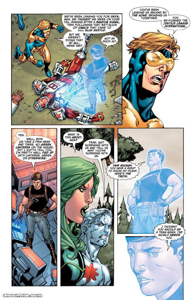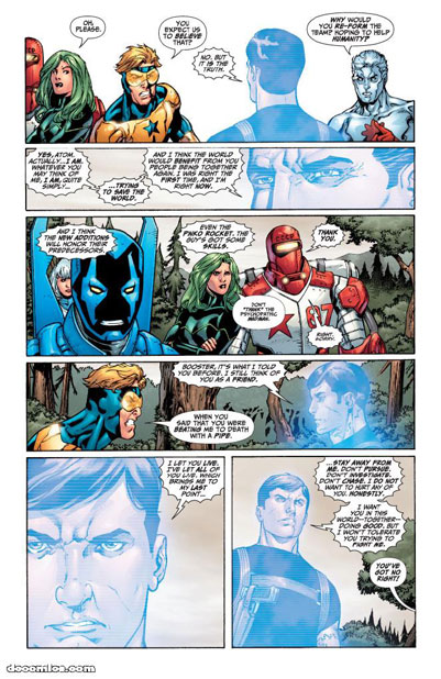 CHARACTERS: Booster Gold (Michael Jon Carter); Fire (Beatriz Corvalho); Ice (Tora Olafsdotter); Captain Atom (Nathaniel Adam); Maxwell Lord; Blue Beetle (Jaime Reyes); Rocket Red (Gavril Ivanovich)