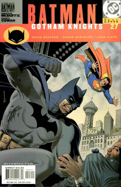 Superman visited Batman while he was taking down some mooks. He offered his support even after Batman said he had no "identity" to clear (Bruce Wayne). Alfred found a case file in the cave on Bruce Wayne and began reading it.