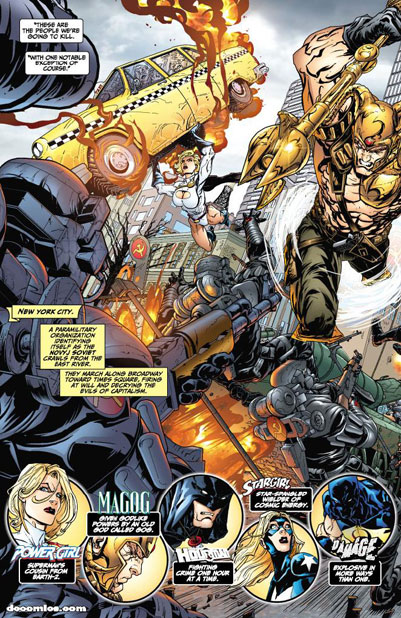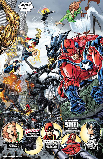 Power Girl (Karen Starr); Magog (Lance Corporal David Reid); Hourman (Rick Tyler); Damage (Grant Emerson); Stargirl (Courtney Whitmore); Cyclone (Maxine Hunkel); Wildcat (Tom Bronson); Judomaster (Sonia Sato); Citizen Steel (Nate Heywood); Lightning (Jennifer Pierce); Jakeem Thunder; King Chimera