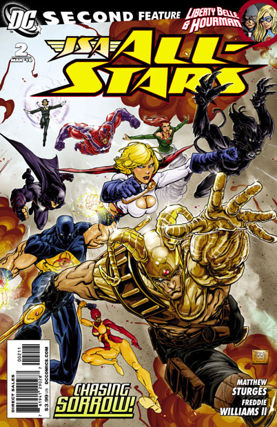 Liberty Belle and Hourman embark on a worldwide hunt for a mysterious book – and the killer who may be after the secrets held within it! Icicle and Tigress aren’t responsible for the murder, but they just might hold some keys to solving the mystery!