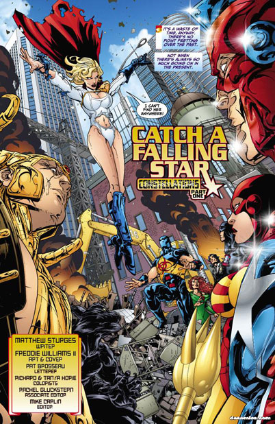 In “Constellations,” part 1, The All-Stars have survived their first major battle, but in the aftermath, one team member is missing without a trace. The mysterious Strike Force has that member captive, but there’s someone else who wants the missing All-Star even worse than Strike Force does. Plus, the rift between Power Girl and Magog widens.