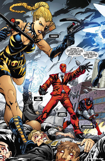 Tigress (Artemis Crock); Johnny Sorrow; The Wizard (William I. Zard); Geomancer; Arthur Pemberton
