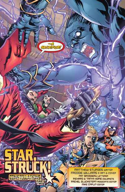 In "Constellations" part 2, the All-Stars are on the trail of the villains who’ve kidnapped one of their own while internal turmoil creates drama in the ranks! And after what went down in the JSA ANNUAL this month, it looks like Magog won't be on the team much longer!