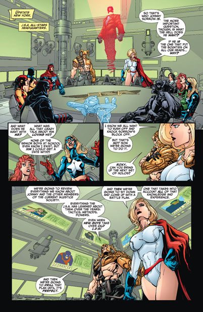 Power Girl (Karen Starr); Magog (Lance Corporal David Reid); Hourman (Rick Tyler); Damage (Grant Emerson); Stargirl (Courtney Whitmore); Cyclone (Maxine Hunkel);
