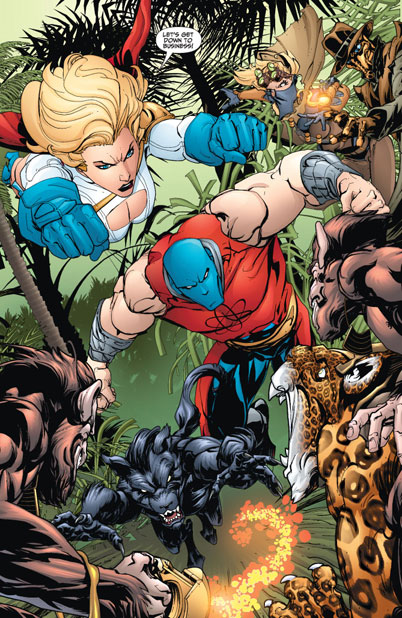 CHARACTERS: Power Girl (Karen Starr); Magog (Lance Corporal David Reid); Hourman (Rick Tyler); Damage (Grant Emerson); Stargirl (Courtney Whitmore); Cyclone (Maxine Hunkel); Wildcat (Tom Bronson); Judomaster (Sonia Sato); Citizen Steel (Nate Heywood); Lightning (Jennifer Pierce); Jakeem Thunder; King Chimera