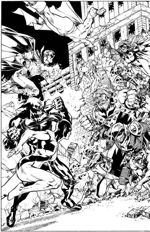 Arriving alongside Wildcat, the JSA finds that Tapeworm too has brought along some backup. Suddenly the streets swarm with a great number of baddies - each of them it seems, hand-picked to counter-act the special abilities of the JSA teammates. Luckily Jay is able to swiftly move the hostages out of harms way before the battle ensues but it quickly becomes obvious that this is no longer a simple rescue mission. The Justice Society are now in the fight for their very lives!