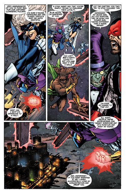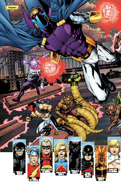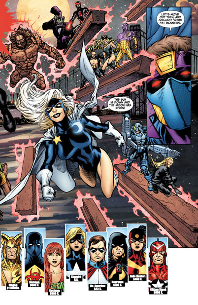 pursuit of the lofty bounties placed over the heads of the JSA! It doesn't help matters much when Magog calls for a retreat while Citizen Steel orders the team to stand their ground leaving many of his teammates confused as to what they should do. Even though both Green Lantern and Power Girl head towards the fray, it may not be enough!