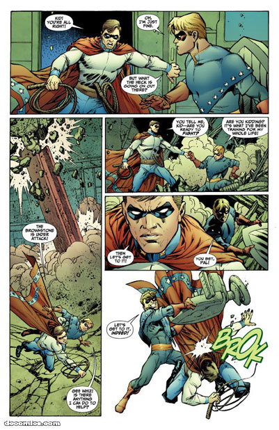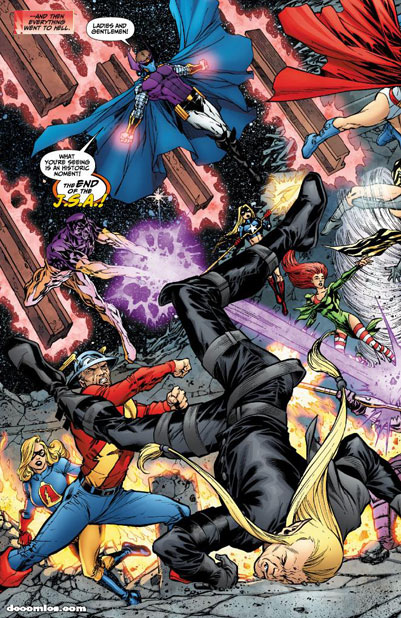 The traitor stands revealed, and his part in the destruction of the Justice Society of America is complete. While the team’s headquarters lies in ruin, the same fate has befallen the team itself! Hold on to your seats, because the JSA as we’ve known it is torn asunder!