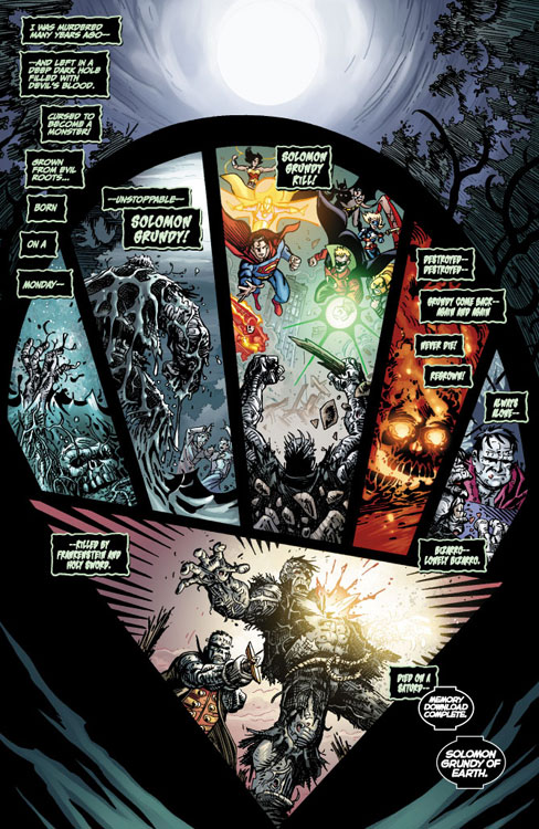CHARACTERS: Man-Bat (Kirk Langstrom); Bizarro; Black Lantern Solomon Grundy
