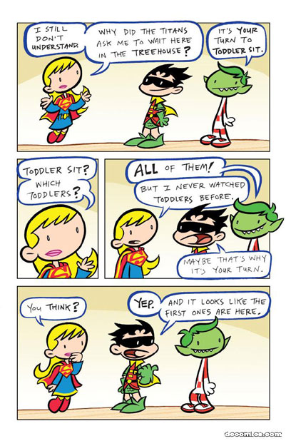 It’s Supergirl’s turn to toddler-sit the tiny Tiny Titans! Can she handle this crisis of infinite toddlers – or will she burst into tears?