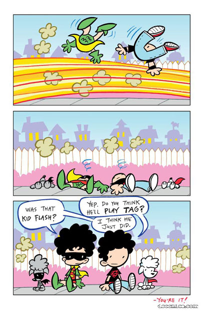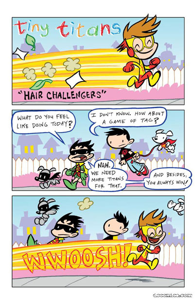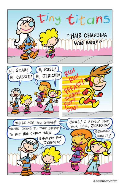 The Curly Hair issue! The kids line up for Kid Flash’s special new salon treatment. Will all the Titans wind up doing new ’dos?