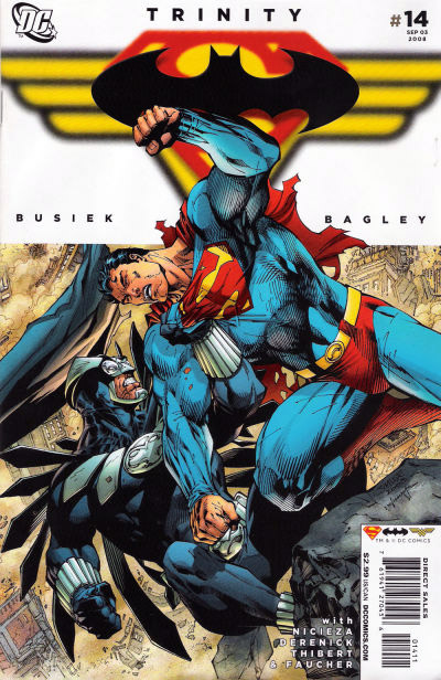 Back on the Anti-Earth's surface the JLA is telling the Trinity to go home and solve their personality problems while the rest of them take care of the population. Before they can do anything, Enigma appears in the CSA's satellite and activates Firestorm's machine which sends everyone back to their proper Earth. As the heroes begin to fade out, one of Morgane's soldiers catches Superman on the forehead, leaving a symbol burned into his skin. Back on Earth-0, Despero's troops begin hailing Superman as their master before self-destructing.