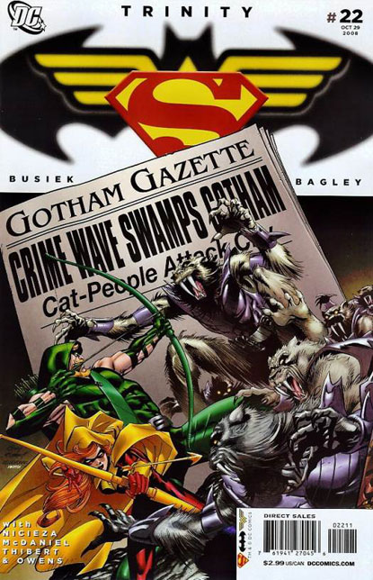 In Gotham, Green Arrow and Speedy are being confronted by Ragman and his partner, Tatters. Ragman is tired of Green Arrow only protecting the rich and is announcing he will now be protecting Gotham. As they talk Green Arrow and Speedy fade out of existence and Ragman and Tatters act as if they have always been the heroes of Gotham.