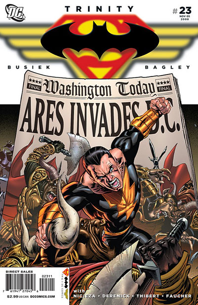 Black Adam is in Washington D.C. battling warriors of Ares. He doesn't know why he felt compelled to travel there from Egypt.