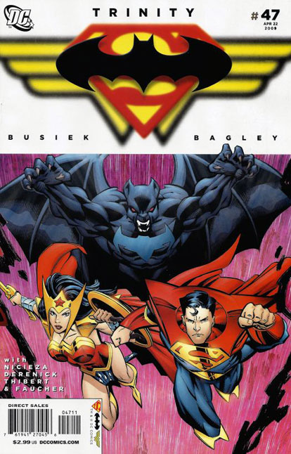 Alfred Pennyworth; Nightwing (Dick Grayson); Lois Lane; Donna Troy; Firestorm (Jason Rusch); Firestorm (Jason Rusch); Batman (Bruce Wayne); Superman (Clark Kent); Wonder Woman (Diana Prince); Kanjar Ro; Krona; Tarot (Marguerita Arroyo Covas); Charity O'Dare; Gangbuster (Jose Delgado); Despero; Morgaine Le Fey; Enigma (Edward Nashton); Ultraman; Owlman; Superwoman; Power Ring; Johnny Quick; Konvikt; Primat; The Trans-Volitional Man; Swashbuckler; Sun-Chained-In-Ink; Void Hound; Kanjar Ro; Krona