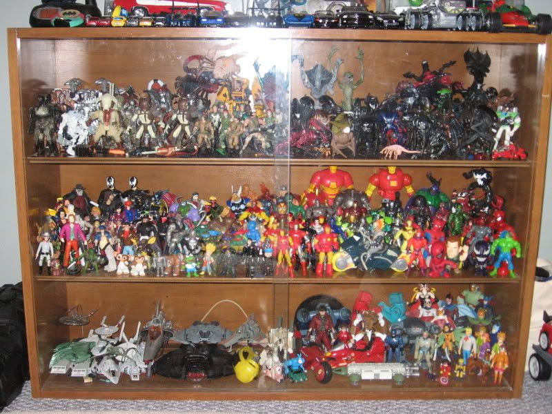 2,359 Action Figures 2,015 of them different, 270 Die Cast cars from 1:64 to 1:16 scale, various playsets, role play toys, R/C vehicles and other collectibles all in one room, or at least most of it.