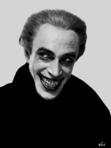 Easily the best Joker smile ever put on film, and it was over 75 years ago. I'd actually like to see it, too - from stills that I've seen, Veidt does an amazing job of conveying emotions while that horrid grin is still on his face. |